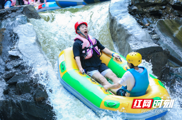 漂流河道全长9公里,水位落差98.5米,河道沿线自然风光秀美,漂流时间约2小时。适合家庭亲子游。